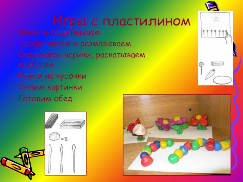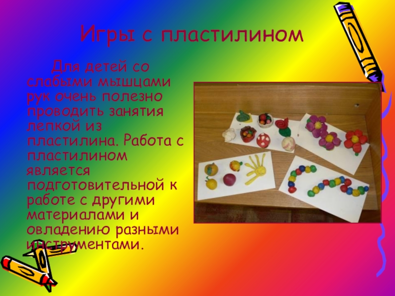 Слайд 9Игры с пластилином