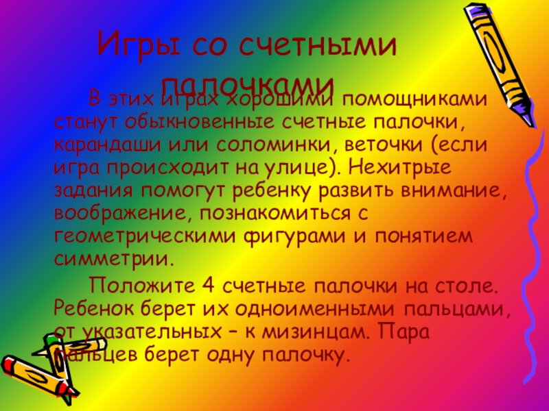 Слайд 11Игры со счетными палочками