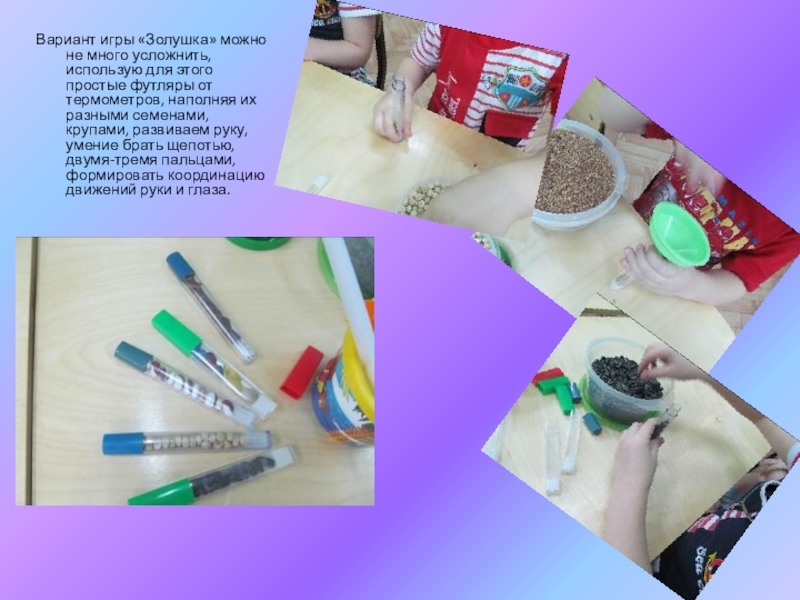 Слайд 12Вариант игры «Золушка» можно не много усложнить, использую для этого простые