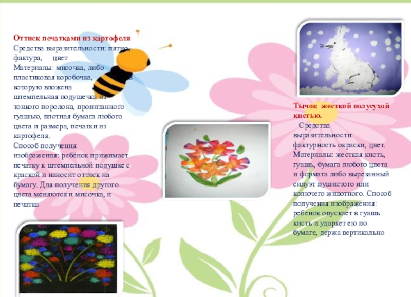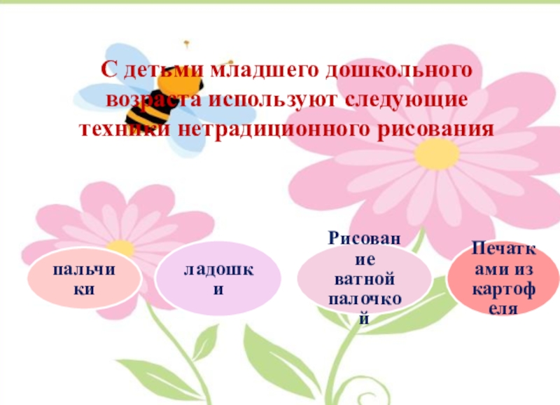 Слайд 10С детьми младшего дошкольного возраста используют следующие техники нетрадиционного рисования