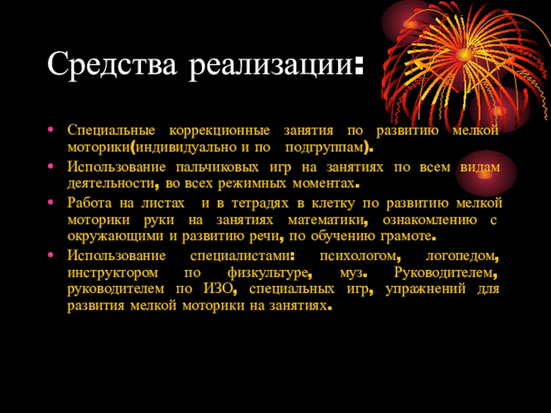 Использование специалистами: психологом, логопедом, инструктором по физкультуре, муз. Руководителем, руководителем по ИЗО, специальных игр, упражнений для развития мелкой моторики на занятиях.