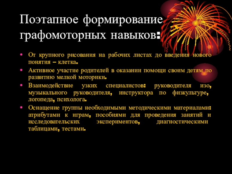 Слайд 9Поэтапное формирование графомоторных навыков:
