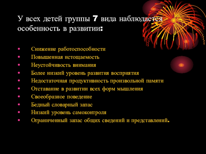 Слайд 4У всех детей группы 7 вида наблюдается особенность в развитии: