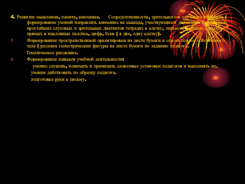 4. Развитие мышления, памяти, внимания. Сосредоточенности, зрительного и слухового