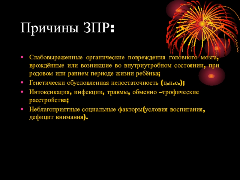 Неблагоприятные социальные факторы(условия воспитания, дефицит внимания).
