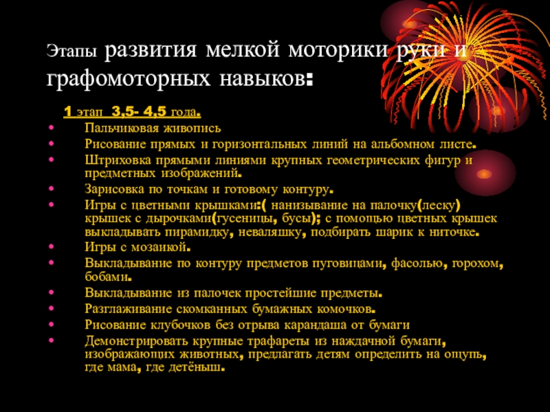 Слайд 11Этапы развития мелкой моторики руки и графомоторных навыков: