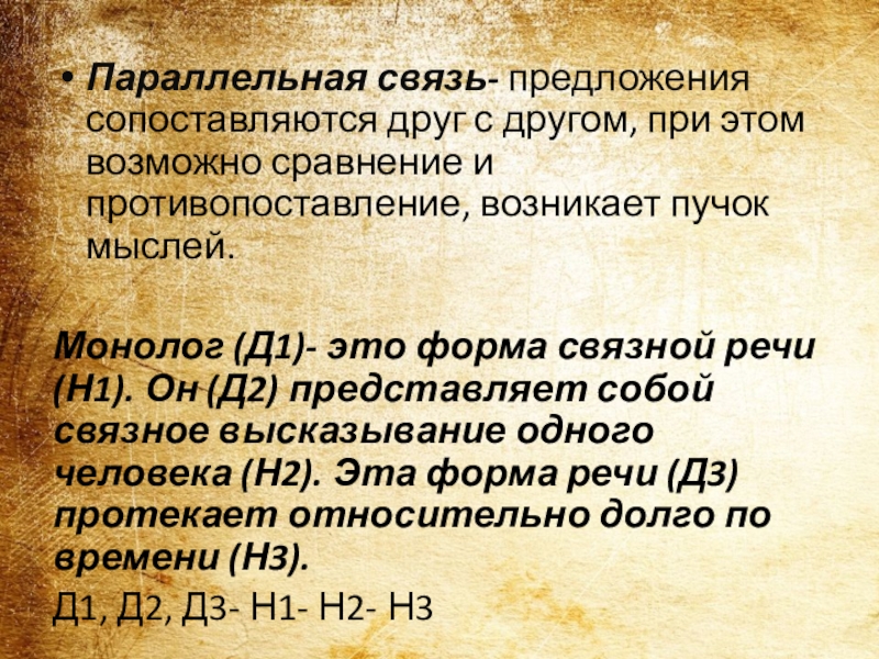 Слайд 10Параллельная связь- предложения сопоставляются друг с другом, при этом возможно сравнение