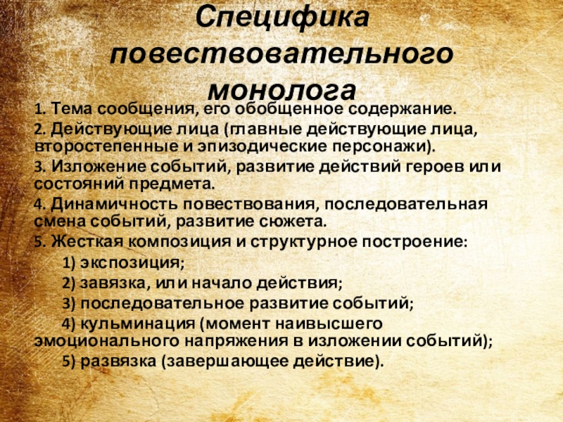 Слайд 14Специфика повествовательного монолога