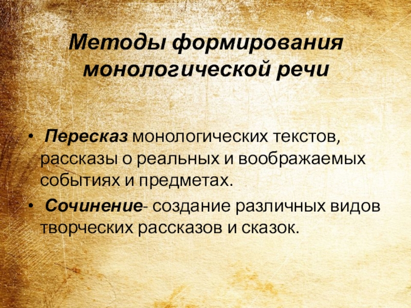 Слайд 18Методы формирования монологической речи