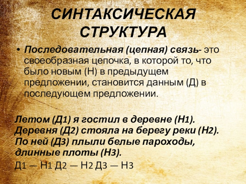 что было новым (Н) в предыдущем предложении, становится данным (Д) в последующем предложении.