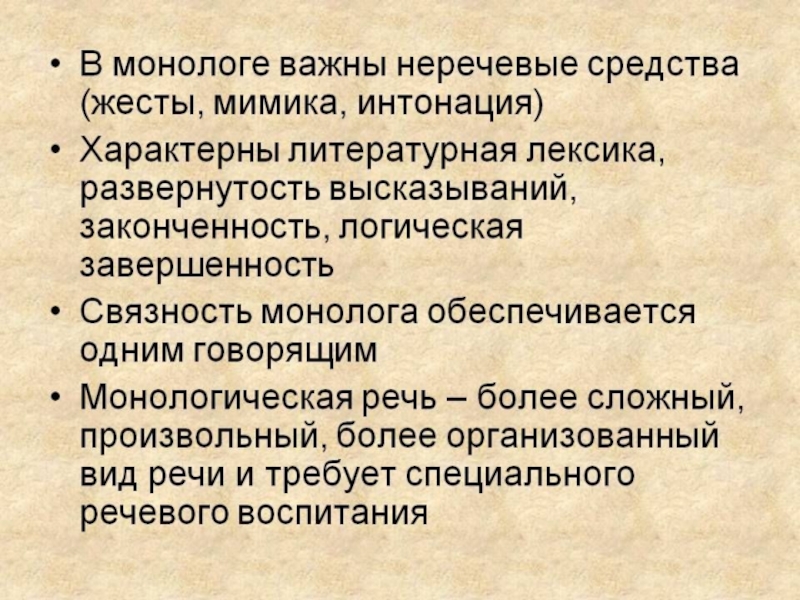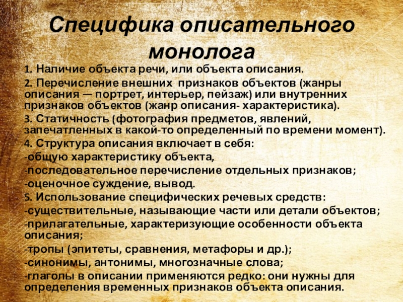 Слайд 13Специфика описательного монолога
