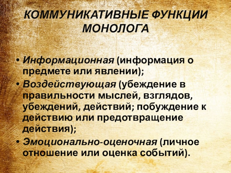 Слайд 7КОММУНИКАТИВНЫЕ ФУНКЦИИ МОНОЛОГА