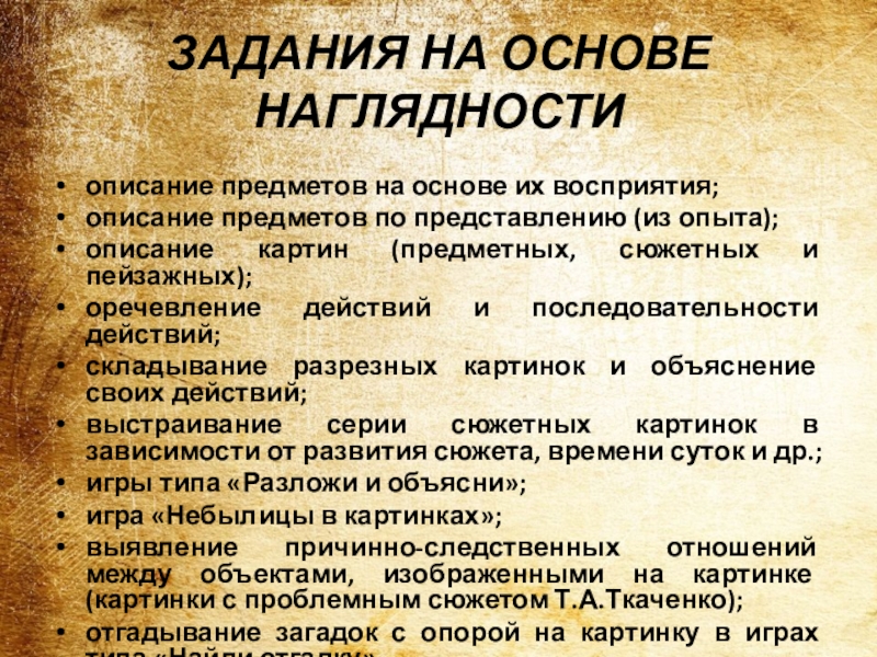 Слайд 19ЗАДАНИЯ НА ОСНОВЕ НАГЛЯДНОСТИ