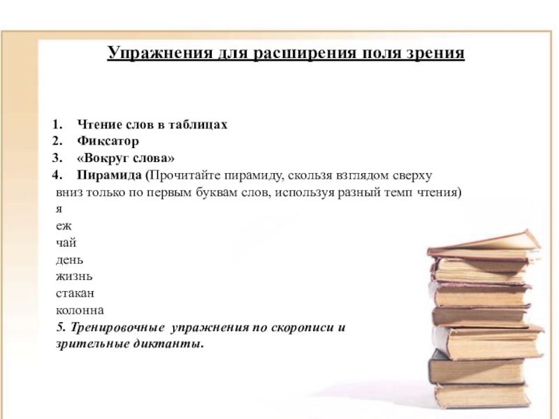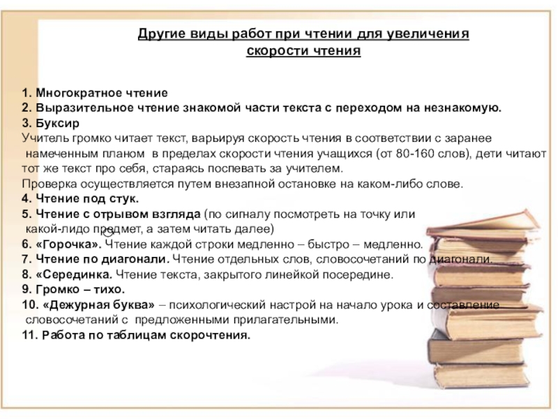 3. Режим щадящего чтения (2-3 строчки прочитал, отдохнул, как диафильм: прочитал текст, посмотрел картинку и далее).