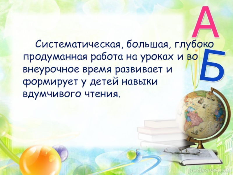 уроках и во внеурочное время развивает и формирует у детей навыки вдумчивого чтения.