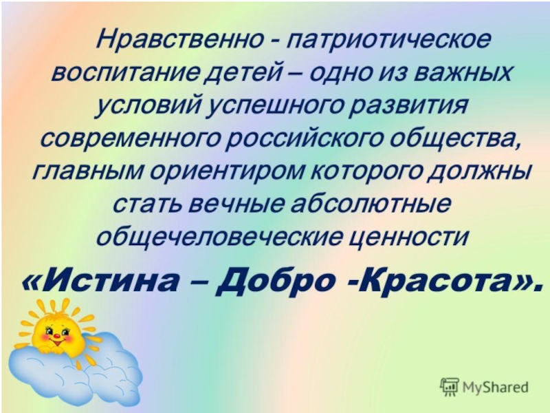 Слайд 1 Развитие нравственно-патриотических чувств у дошкольников посредством продуктивной деятельности в семье.
