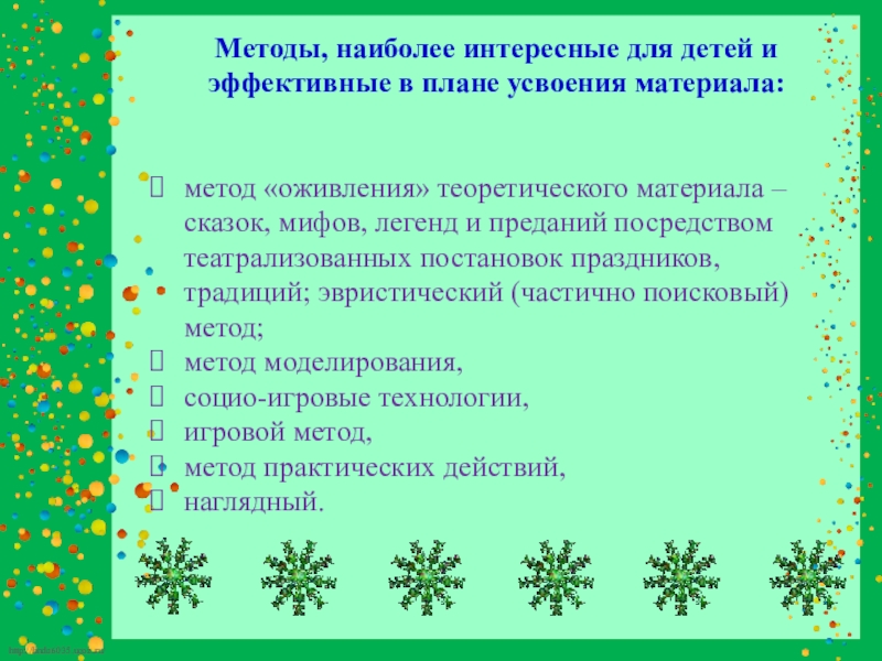 Слайд 9Методы, наиболее интересные для детей и эффективные в плане усвоения материала: