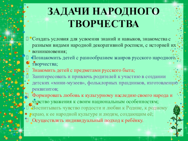 Слайд 8ЗАДАЧИ НАРОДНОГО ТВОРЧЕСТВА