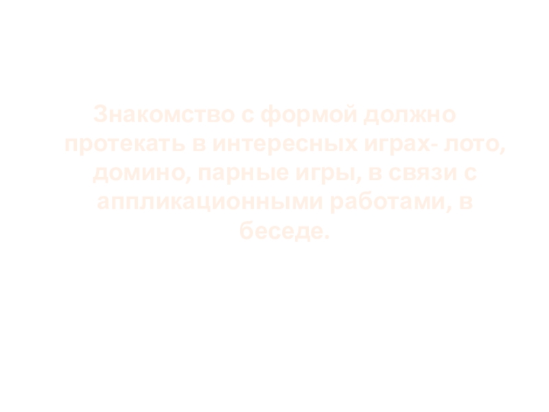 Слайд 12Знакомство с формой должно протекать в интересных играх- лото, домино, парные