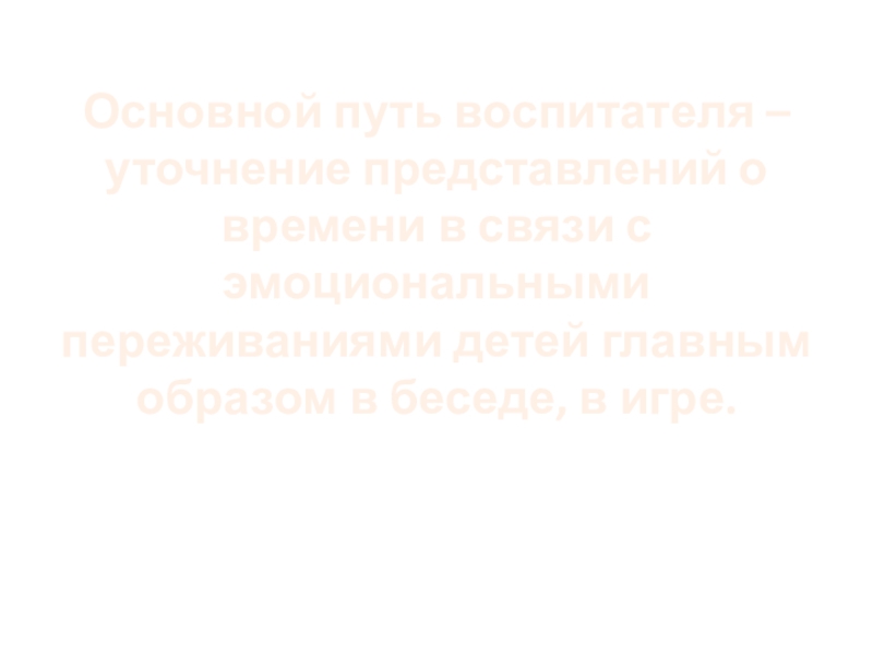 Слайд 15 Основной путь воспитателя – уточнение представлений о времени в связи с