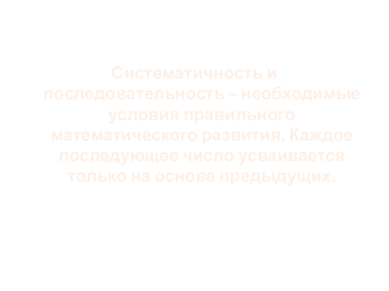 Систематичность и последовательность – необходимые условия правильного математического развития. Каждое последующее число усваивается только на основе предыдущих.