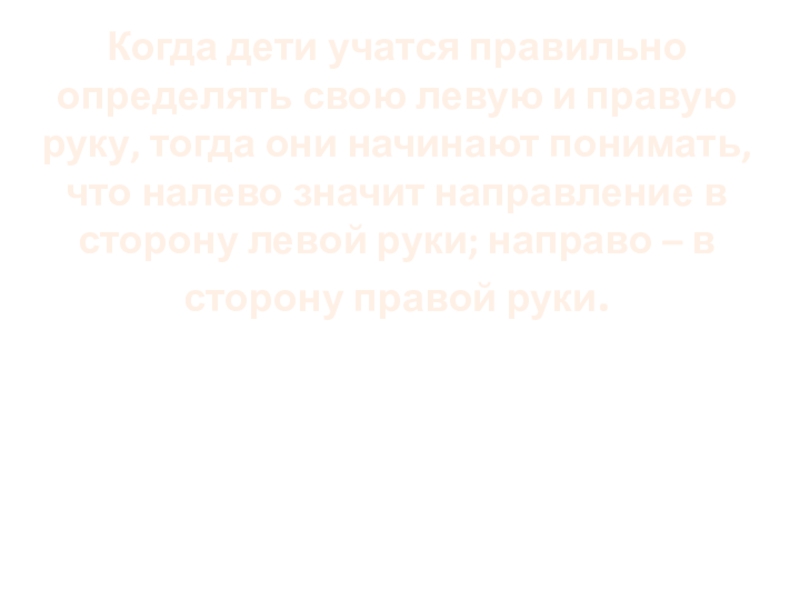 Когда дети учатся правильно определять свою левую и правую руку, тогда они начинают понимать, что налево значит