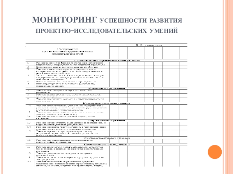 МОНИТОРИНГ успешности развития проектно-исследовательских умений
