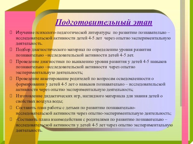 Изучение психолого-педагогической литературы по развитию познавательно –исследовательской активности детей 4-5
