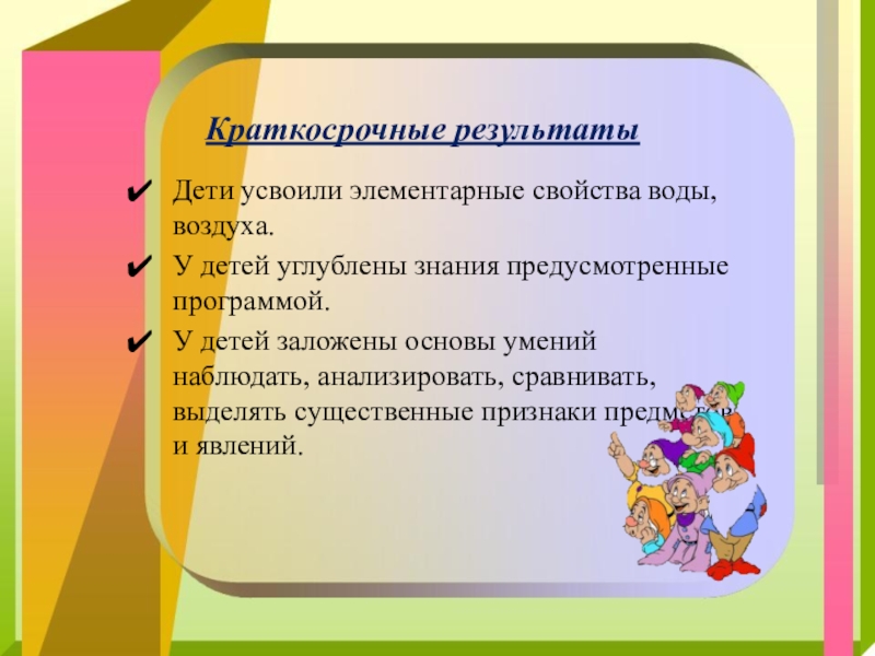 У детей заложены основы умений наблюдать, анализировать, сравнивать, выделять существенные признаки предметов и явлений.