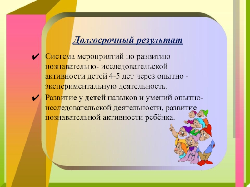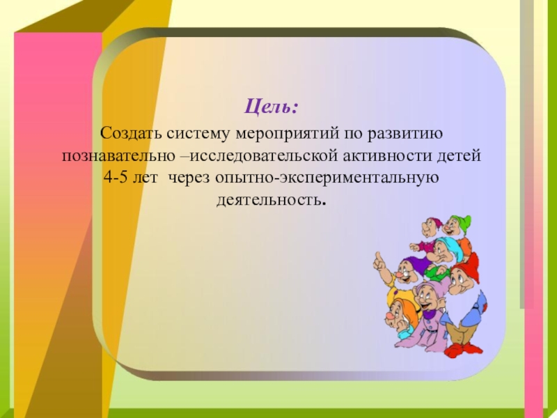 Создать систему мероприятий по развитию познавательно –исследовательской активности детей 4-5