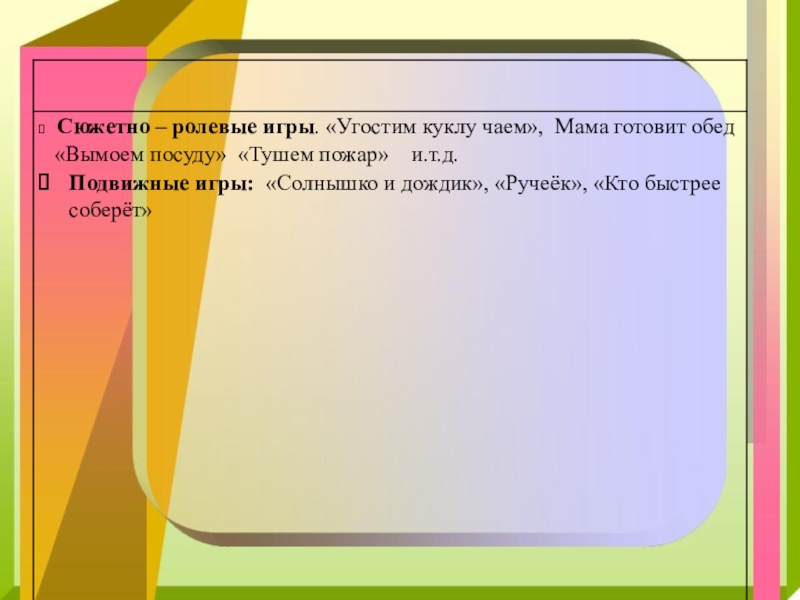 Слайд 18Сюжетно ролевые игры и игровые упражнения.