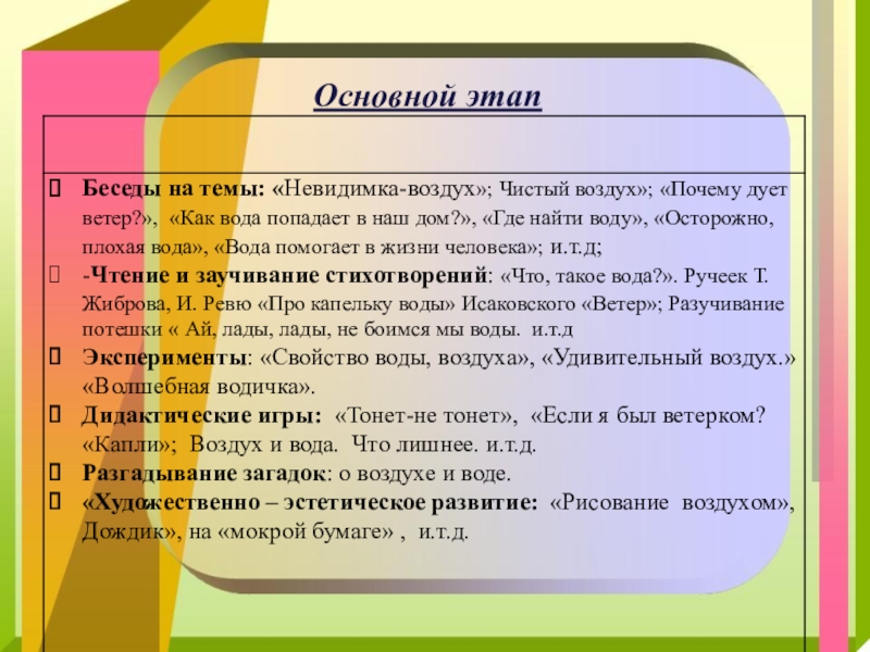 интересы дошкольника проявляются в его отношении к окружающему миру. И для того, чтобы побудить детей к самостоятельному расширению и углублению знаний в интересующей области, а именно – свойства воды, воздуха был разработан данный проект, где дети участвуют в различных опытах и экспериментах. Эксперимент связывает творческие проявления с развитием знаний. Дети должны уметь думать, находить собственные решения, выдвигать гипотезы – догадки ребенка.