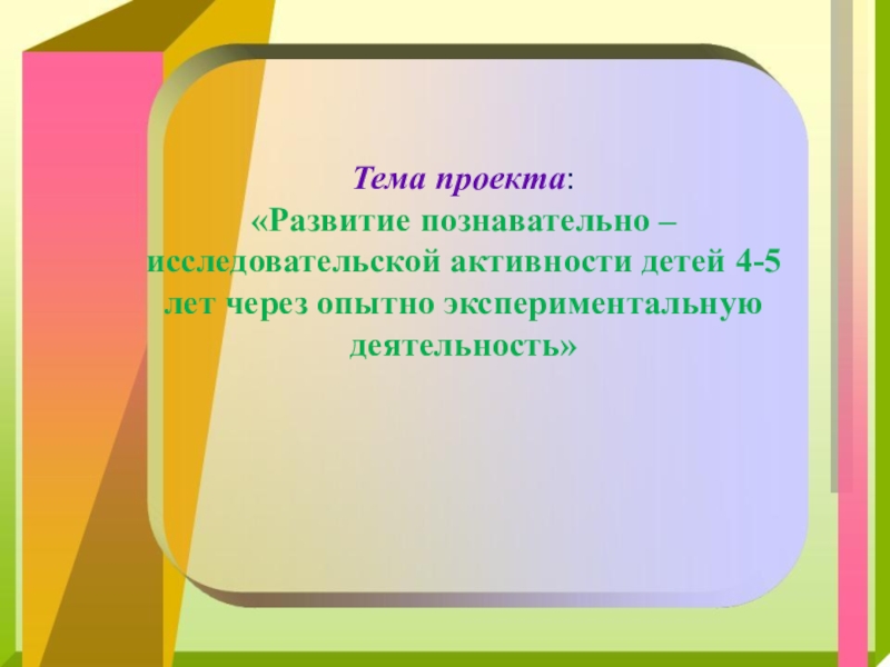 «Развитие познавательно –исследовательской активности детей 4-5 лет через опытно