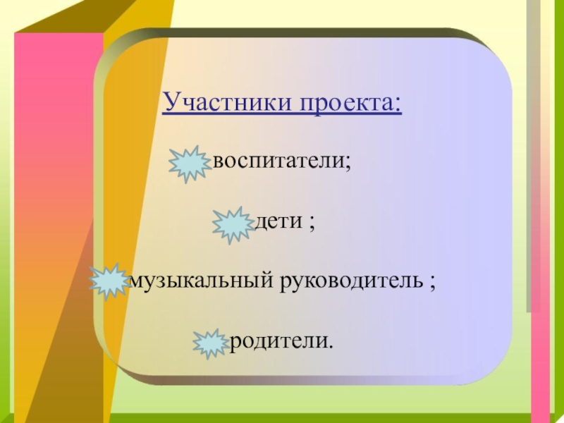 результатов проекта коллегам. Презентация результатов проекта родителям.