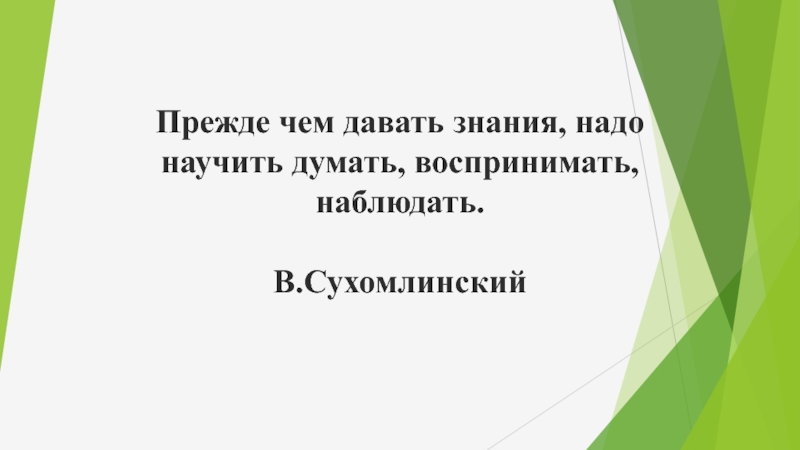 Слайд 2Прежде чем давать знания, надо научить думать, воспринимать, наблюдать.