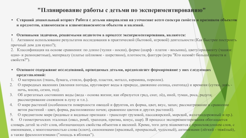 Слайд 17"Планирование работы с детьми по экспериментированию"