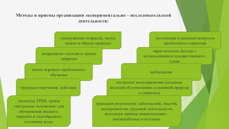 Слайд 11Методы и приемы организации экспериментально – исследовательской деятельности:
