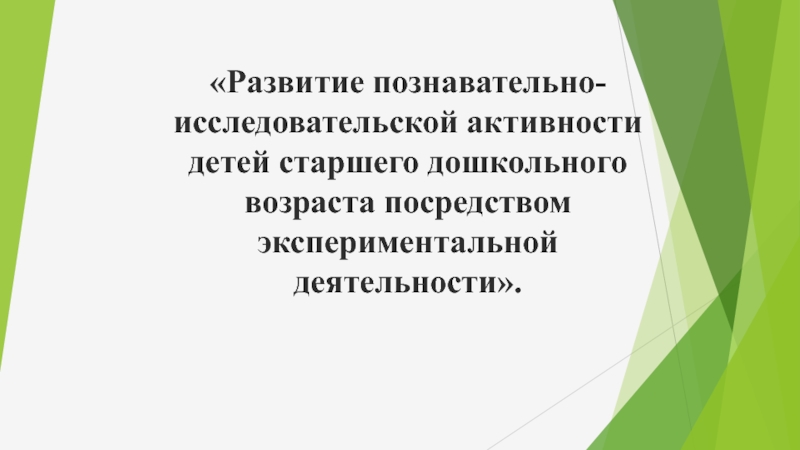 Слайд 1«Развитие познавательно-исследовательской активности детей старшего дошкольного возраста посредством экспериментальной деятельности».