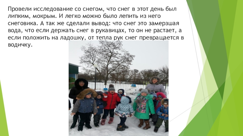 Слайд 23Провели исследование со снегом, что снег в этот день был липким,