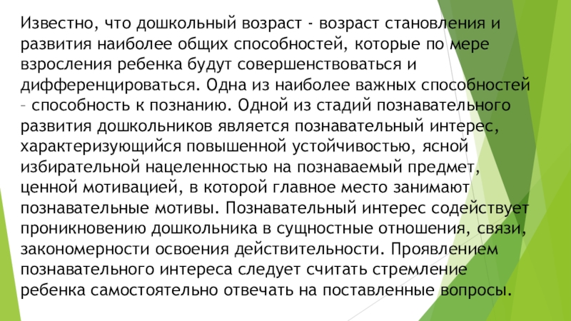 Слайд 3Известно, что дошкольный возраст - возраст становления и развития наиболее общих