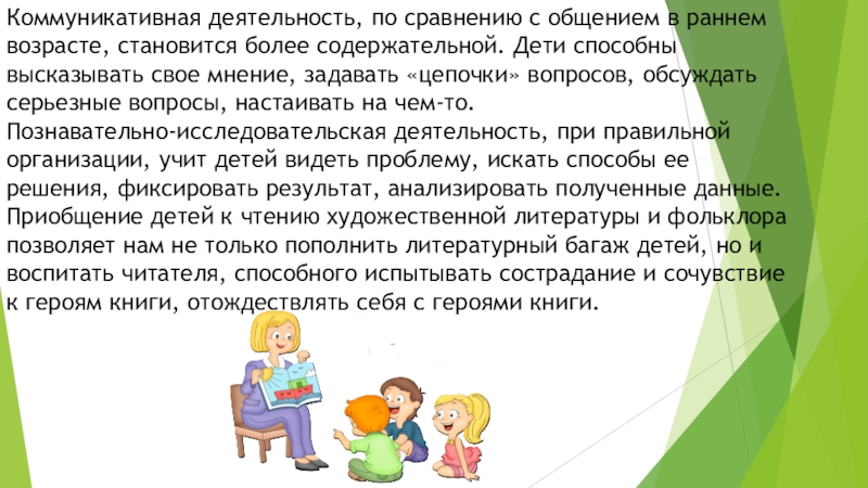Слайд 11Коммуникативная деятельность, по сравнению с общением в раннем возрасте, становится более