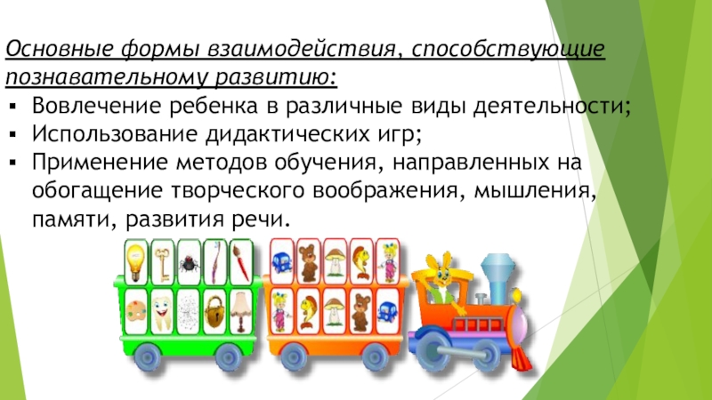 Слайд 4Основные формы взаимодействия, способствующие познавательному развитию: