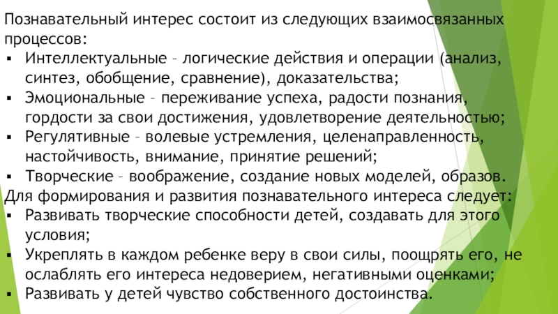 Слайд 6Познавательный интерес состоит из следующих взаимосвязанных процессов: