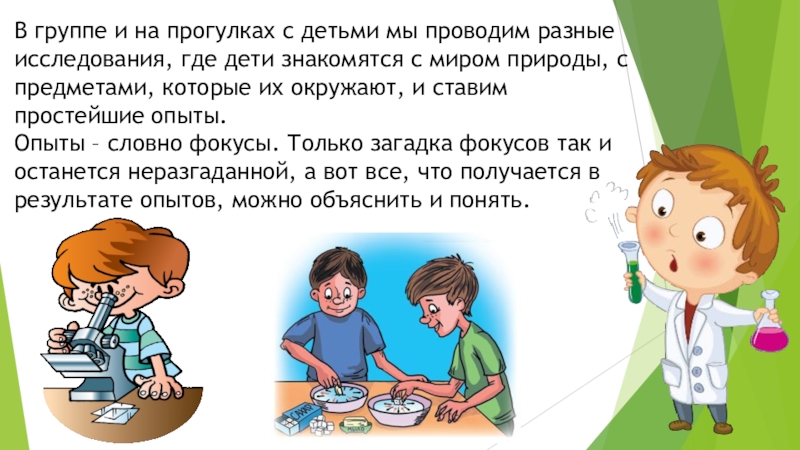 Слайд 16В группе и на прогулках с детьми мы проводим разные исследования,