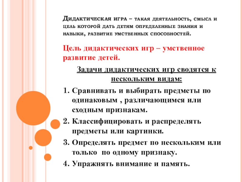 1. Сравнивать и выбирать предметы по одинаковым , различающимся или сходным признакам.