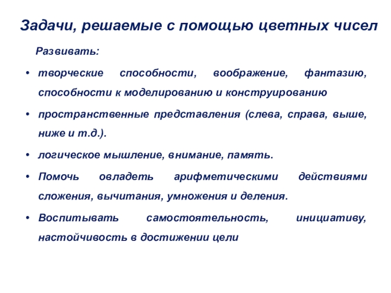 Слайд 7Задачи, решаемые с помощью цветных чисел