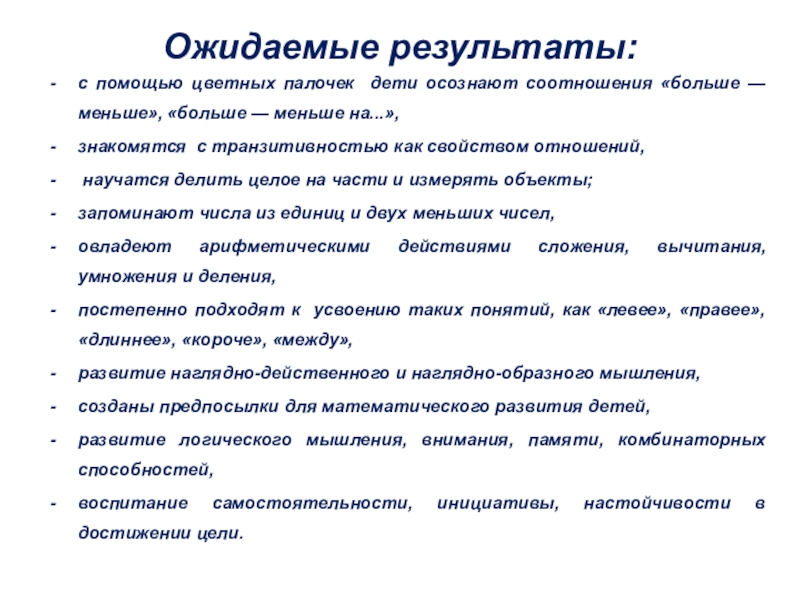 с помощью цветных палочек дети осознают соотношения «больше — меньше»,