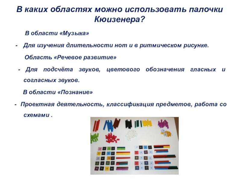 Слайд 9В каких областях можно использовать палочки Кюизенера?