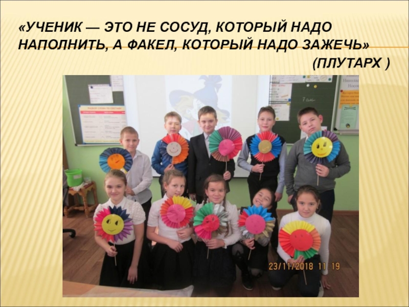 Слайд 2 «УЧЕНИК — ЭТО НЕ СОСУД, КОТОРЫЙ НАДО НАПОЛНИТЬ, А ФАКЕЛ, КОТОРЫЙ НАДО ЗАЖЕЧЬ»