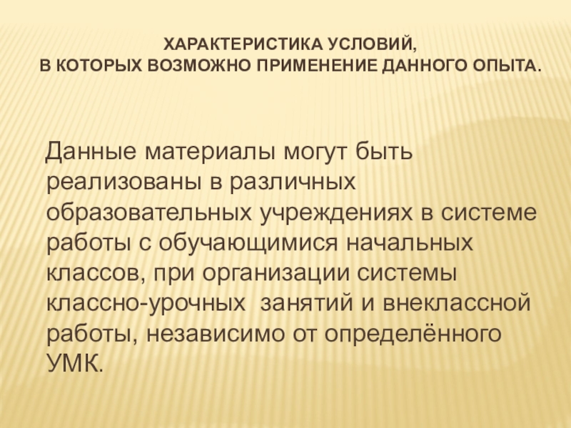 могут быть реализованы в различных образовательных учреждениях в системе работы с обучающимися начальных классов, при организации системы классно-урочных занятий и внеклассной работы, независимо от определённого УМК.